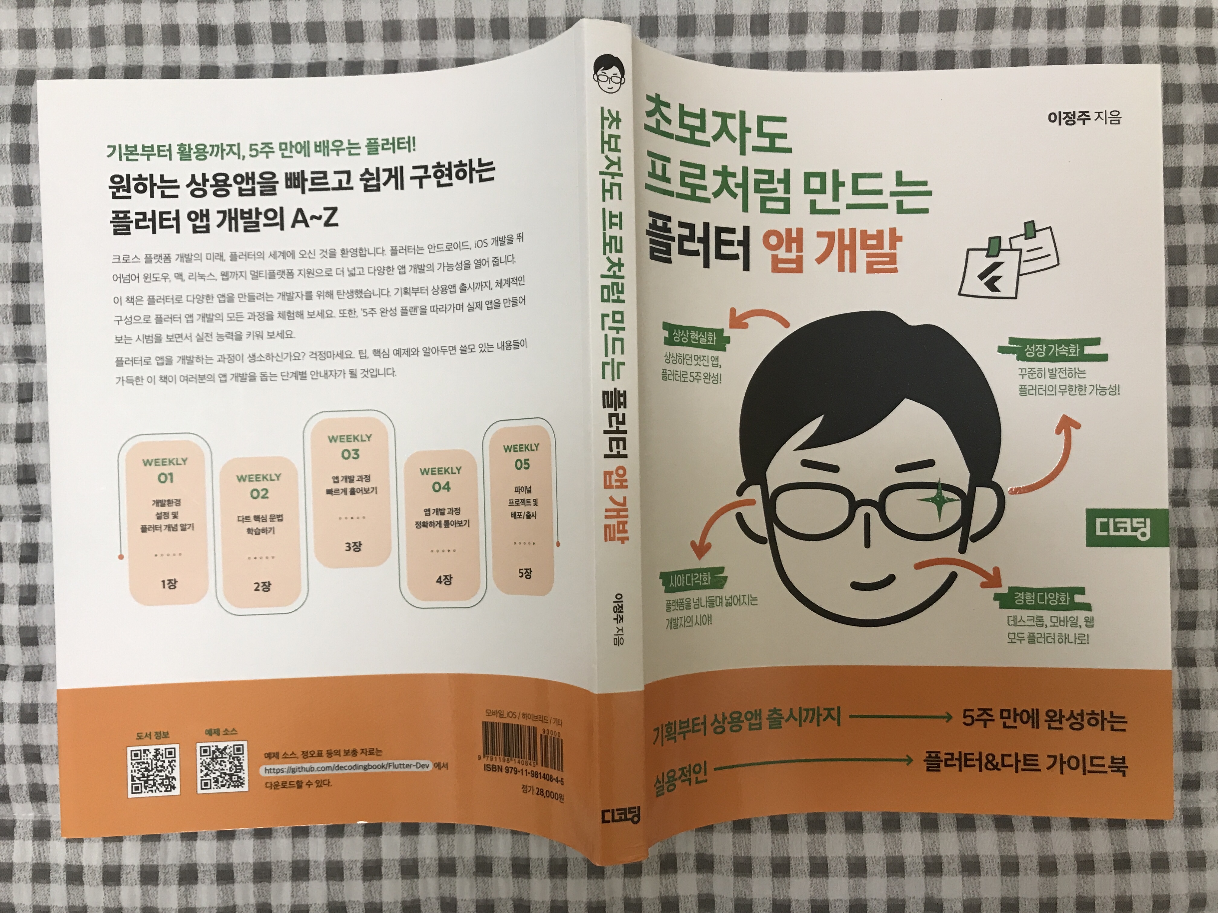 한빛미디어(주)의 임프린트 브랜드 디코딩에서 플러터 앱 개발을 위한 책이 발간됐습니다. "초보자도 프로처럼 만드는 플러터 앱 개발"은 플러터(Flutter)를 활용한 모바일 앱 개발을 처음 시작하는 초보자들을 위한 꽤나 훌륭한 안내서입니다. 이 책은 3개의 파트와 5개의 장으로 구성되어 있으며, 플러터로 앱을 개발하기 위한 모든 단계를 아우르고 있기 때문에 천천히 읽고 실습하다 보면 어느 순간 앱을 완성해 볼 수 있습니다. 파트 제목이 재밌습니다. 플러터 여정으로 표현하고 있는데요,