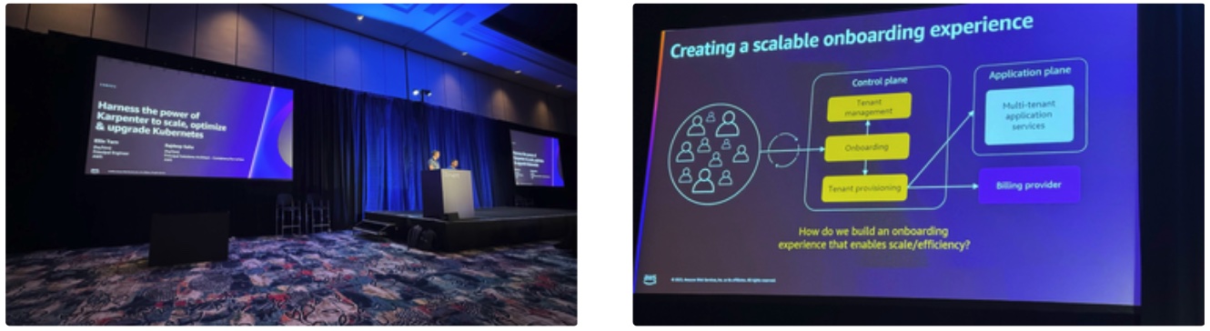 세션은 일반적인 행사장 공간을 생각해도 됩니다. 세션은 어차피 유튜브로 나중에 편히 볼 수 있지만 현장에서 듣는 맛(?)을 따라오진 못합니다. 더욱이 영상은 뒤늦게 찾아보지 않게 되지 않나요? 아무래도 현장에서 연사자와 함께 호흡하며 들을 때 적당한 몰입감 때문에 얻어가는 게 더 있는 것 같습니다. 아마 사람마다 다르겠죠? 🙂 저는 요즘 카펜터와 멀티 테넌트 쪽에 관심이 많아서 두 개 세션을 특히 재밌게 들었습니다. 유사한 주제로 세션이 많으니 관심이 있으시면 찾아보시길 바랍니다.