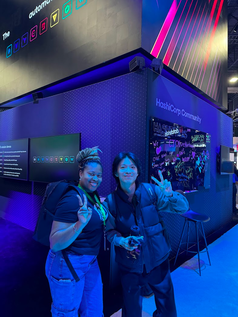 해외에서도 커뮤니티 활동을 빼놓을 수 없겠죠? 저는 하시코프(HashiCorp) 엠버서더로 활동하고 있습니다. 이번 리인벤트에 하시코프가 에메랄드 스폰서로 들어왔는데요. 에메랄드 스폰서는 엑스포 부스 외에 다른 공간을 대여해서 운영하기도 합니다.