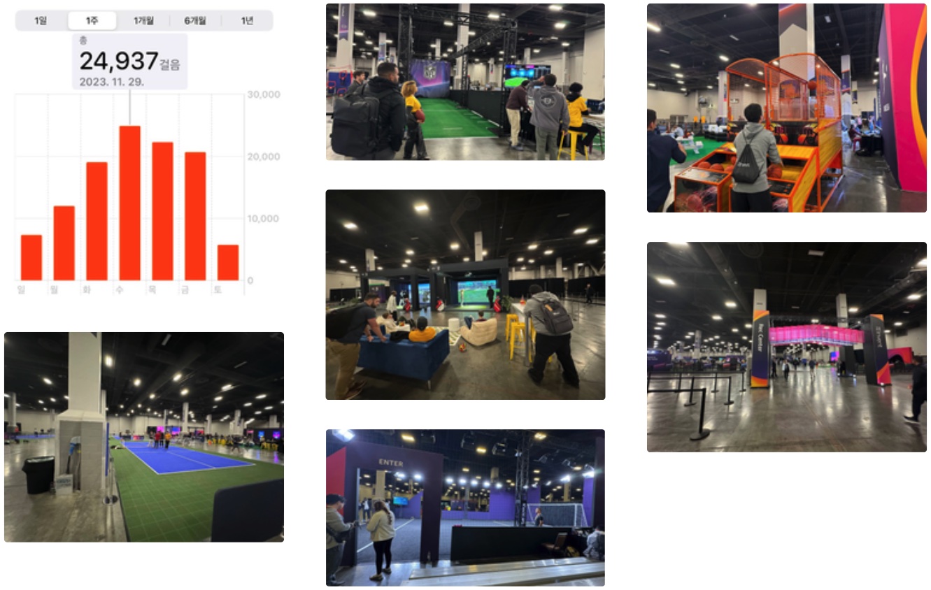 걸음수만 보면 별로 이상해 보이지 않습니다. 그런데 놀러 간 게 아니다 보니까 아래 이미지에 있는 걸음에는 항상 백팩과 16인치 맥북이 함께 했습니다. 맥북을 호텔에 두는 것도 저는 괜히 불안하더라고요. 수요일 넘어가면서부터는 군생활이 추억될 정도로 힘들었습니다. 만약 다시 가게 된다면 사무용 전자기기는 아이패드 정도로 타협해서 가져갈 것 같네요. 😇 행사장에는 세션뿐만 아니라 쉬거나 즐길거리가 많으니 충분한 즐기도록 하세요. 지치면 듣고 싶은 세션을 들을 힘도 없게 됩니다.