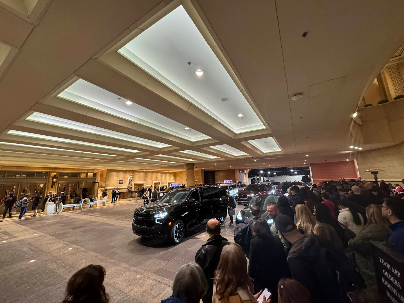 그 외에 개인적인 이동이나 셔틀이 싫어서 Rideshare를 타겠다면 모든 호텔에 따로 공간이 있으니 그쪽으로 가시면 됩니다. 다만, 당연히 사람이 몰리는 시간에 그곳은 지옥이 됩니다. 아래는 월요일 저녁 베네시안 풍경입니다. 우버나 리프트가 Rideshare 공간으로 들어오지를 못하는 지경입니다. 저도 대충 25분 정도 기다려서 겨우 탔네요.
