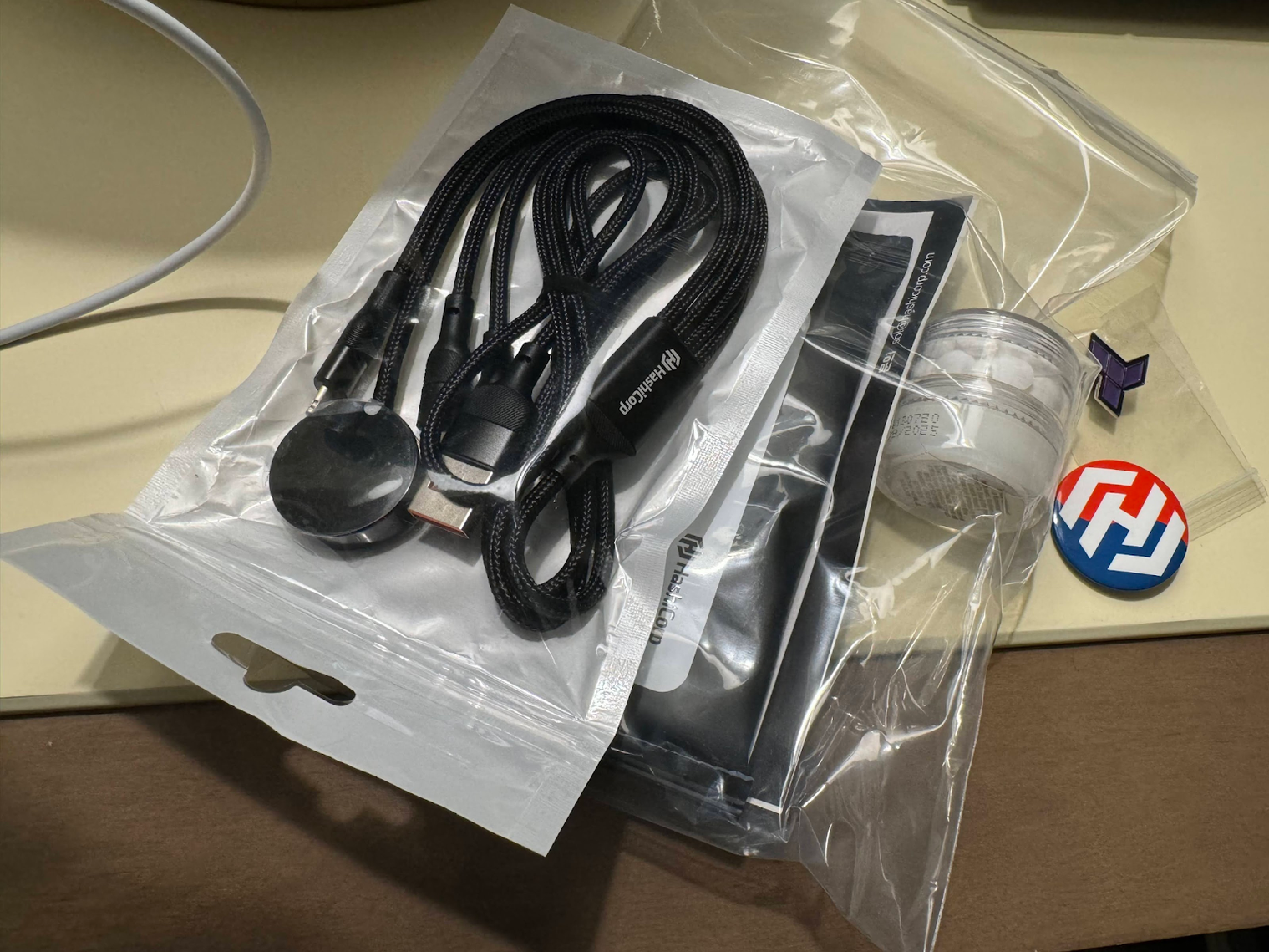 한국 고객들을 위해 특별 제작 됐다는 스웨그도 받았습니다. 특히 4in1 충전기가 아주 마음에 듭니다. USB-C, 라이트닝, 애플워치 그리고 5핀인지 8핀인지 케이블까지. 제게 아주 필요한 아이템이었는데 기분 좋게 득템 했네요.