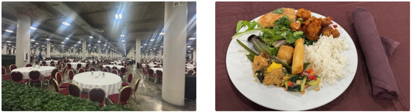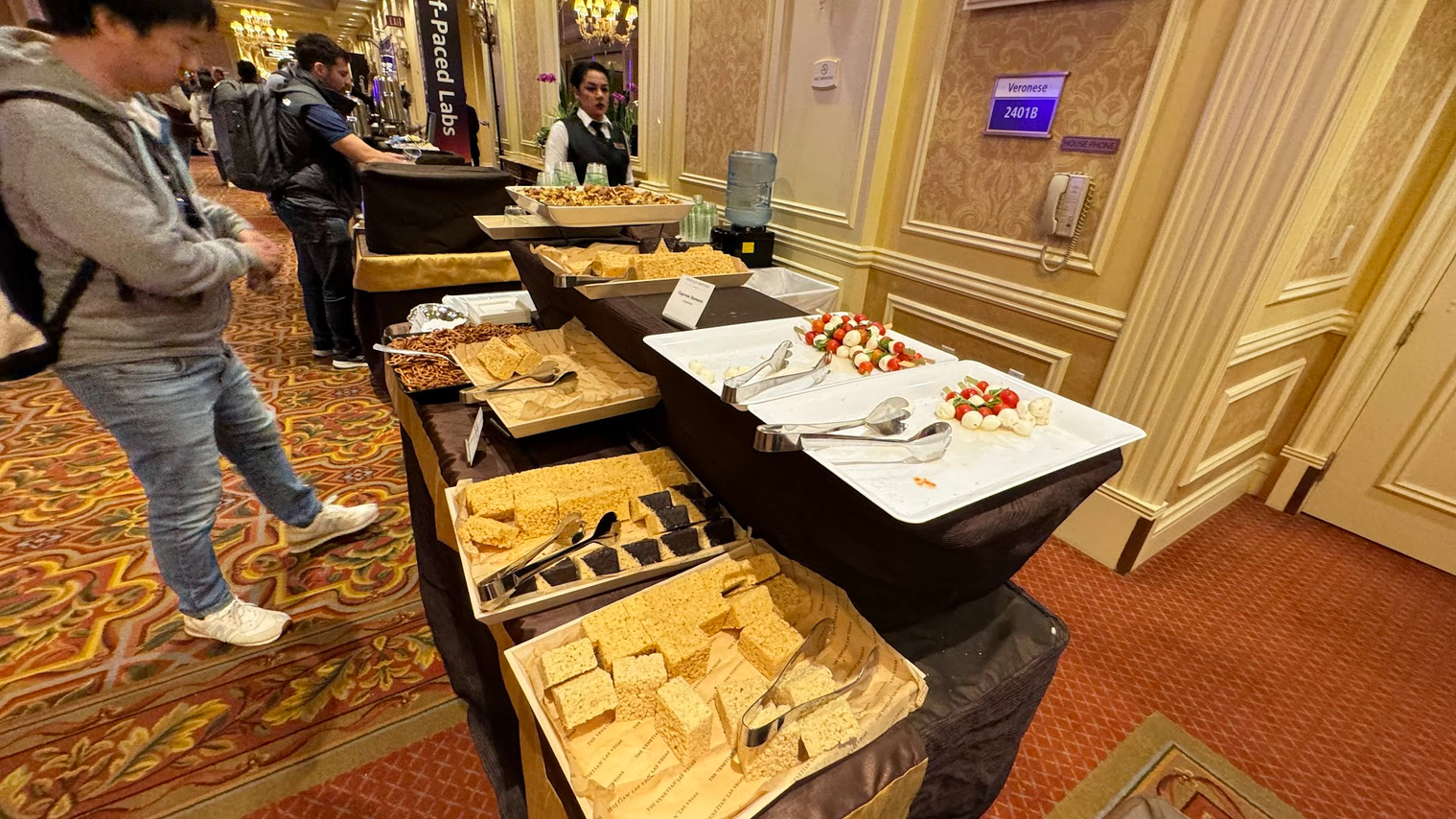 지정된 호텔에서 조식과 중식을 줍니다. 식당마다 메뉴는 다르기 복불복이 좀 있습니다. 왼쪽은 베네시안 식당인데 끝이 안 보일 정도로 넓습니다. “늦게 가서 자리가 없으면 어쩌지?” 같은 걱정은 하실 필요가 없습니다. 대충 수천 명은 동시에 식사가 가능한 공간입니다. 오른쪽은 만달레이베이 중식입니다. 뷔페식인데 라스베가스에서 먹었던 식사 중에 단연 최고였습니다. 너무 폭식해서 오후에 힘들었다는…