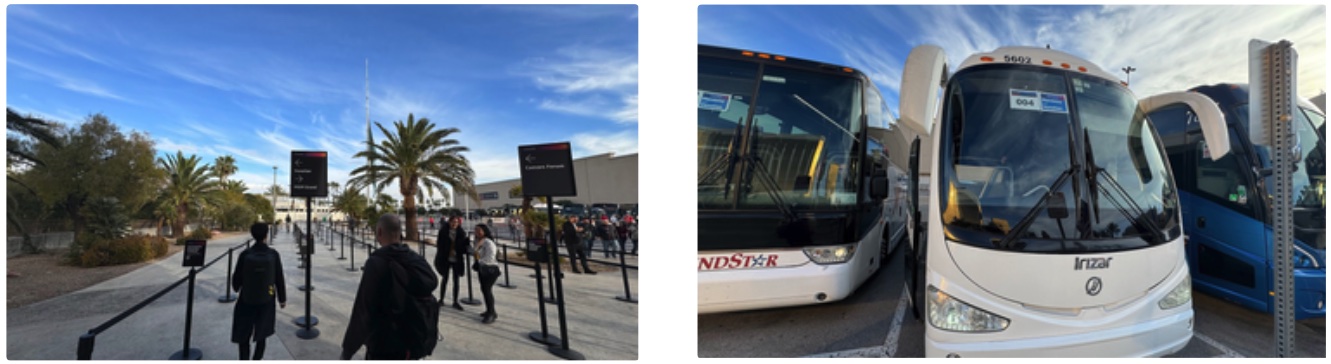 현재 매드업과 계약된 MSP를 통해 아시아나항공 전세기로 라스베가스 공항까지 직항으로 갈 수 있었습니다. 역시 국내 항공이라 그런지 한국사람들만 있어서 매너가 좋은 건지 쾌적한 비행기로 편하게 이동할 수 있었습니다. 비행 시간은 갈 때 11시간, 올 때 13시간 걸렸네요. 국 땅을 밟는 게 이번이 처음이 아니고, 더욱이 전세기라서 비교적 쉽게 입국심사를 통과할 수 있었습니다. ( “너도 AWS 때문에 온 거야?” 하고 통과.. )