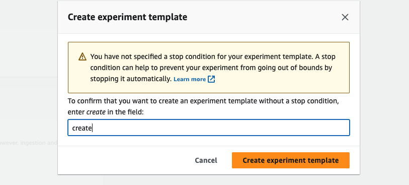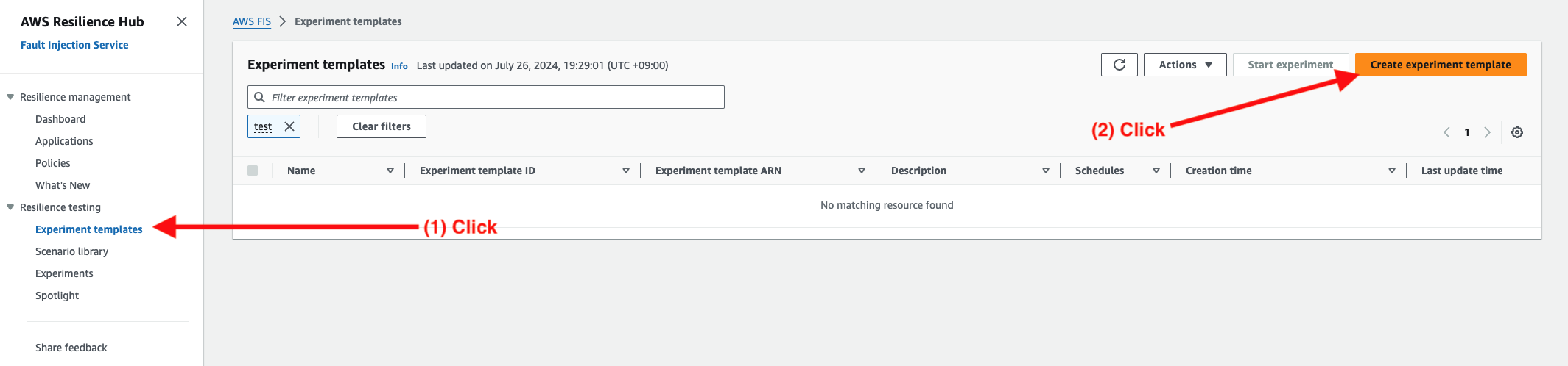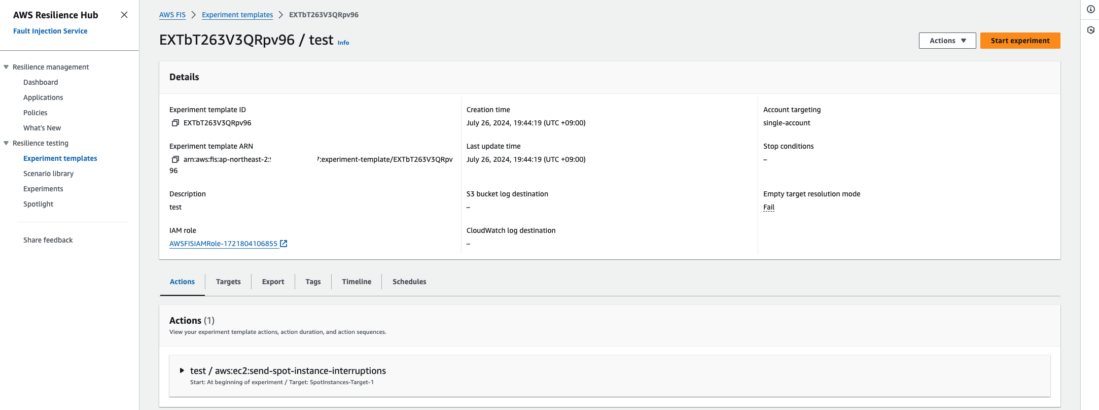 자, 아래와 같이 실험 템플릿이 생성되었습니다.