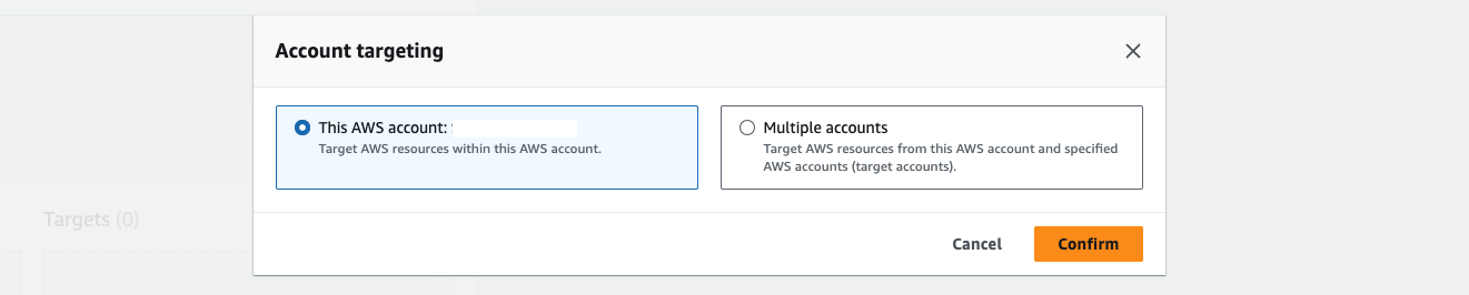 테스트 계정 범위를 지정할 수 있습니다. 여기서는 기본 콘셉트를 이해하기 위해 This AWS account를 선택합니다.