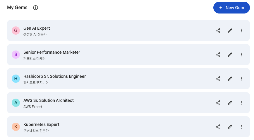 Cursor 토큰 사용량이 저조한 또 다른 이유는 Google Workspace에 있는 Gemini와 대화하는 시간이 길기 때문이다. 꼭 Cursor를 사용해야만 하는 상황이 아니라면 Workspace에 있는 Gemini를 쓴다. 자주 사용하는 것들은 개별로 Instructions을 주입해서 Gems으로 활용하고 있다.