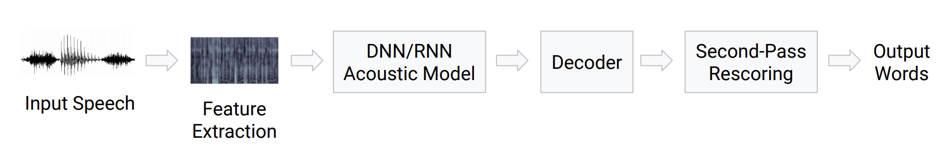 End-to-End ASR(Automatic Speech Recognition)은 입력되는 음성을 받아서 처리하고 최종적으로는 이를 문자로 표현하는 것을 나타냅니다. 이런 프로세스를 구축하기 위해서는 통상 아래와 같은 pipeline을 사용하게 됩니다.