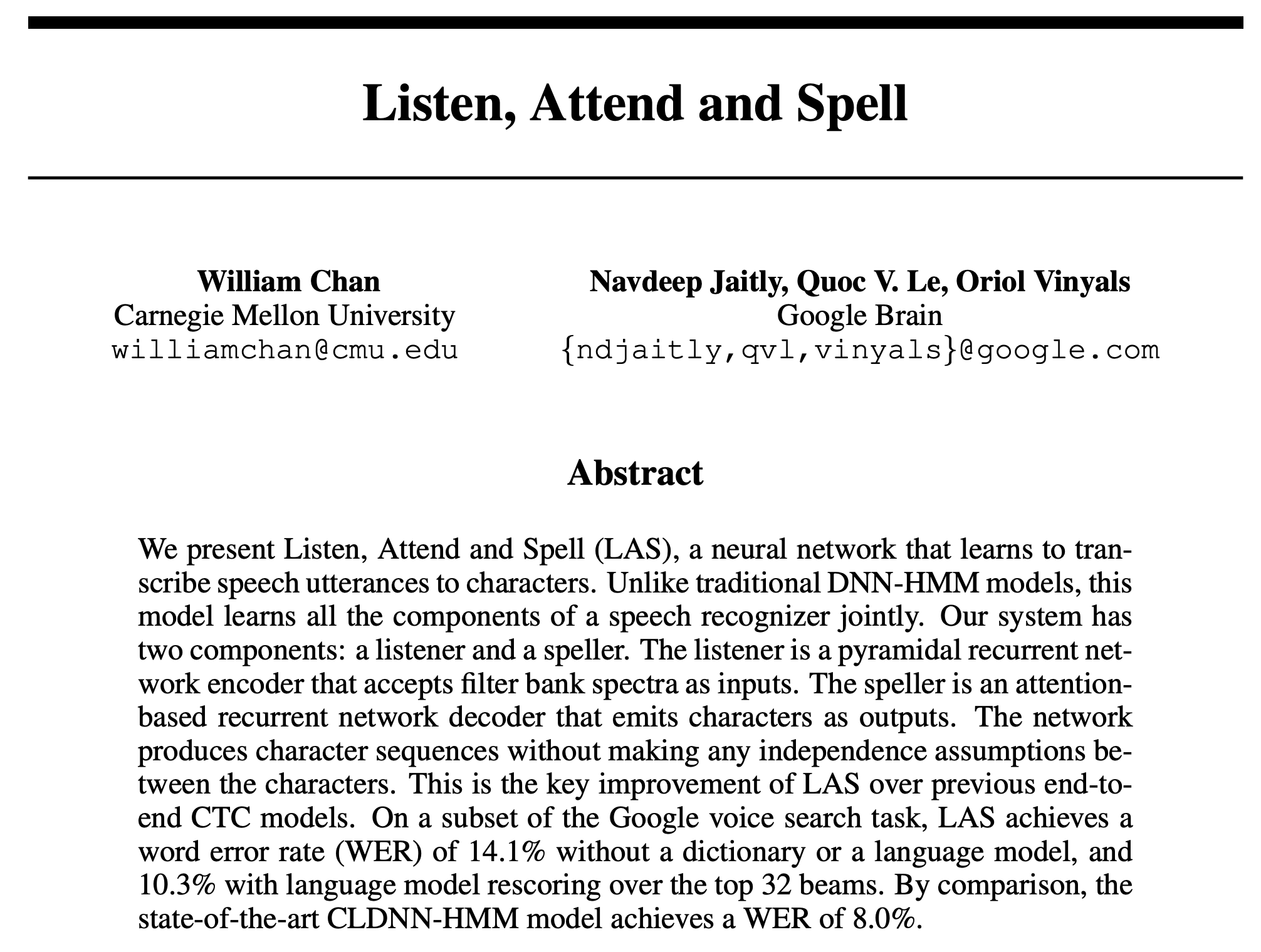 한편 비슷한 시기에 Listen, Attend and Spell(LAS) 모델이 Google Brain에서 제안됩니다. 이후부터 ASR은 CTC와 LAS로 나뉜다고 봐도 무방할 정도로 너무나 유명한 모델이죠.