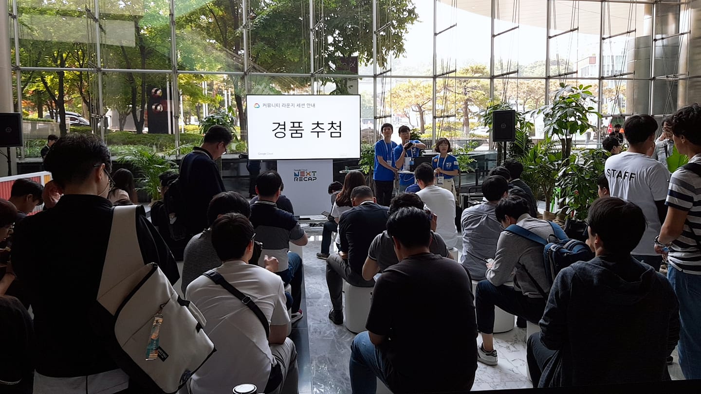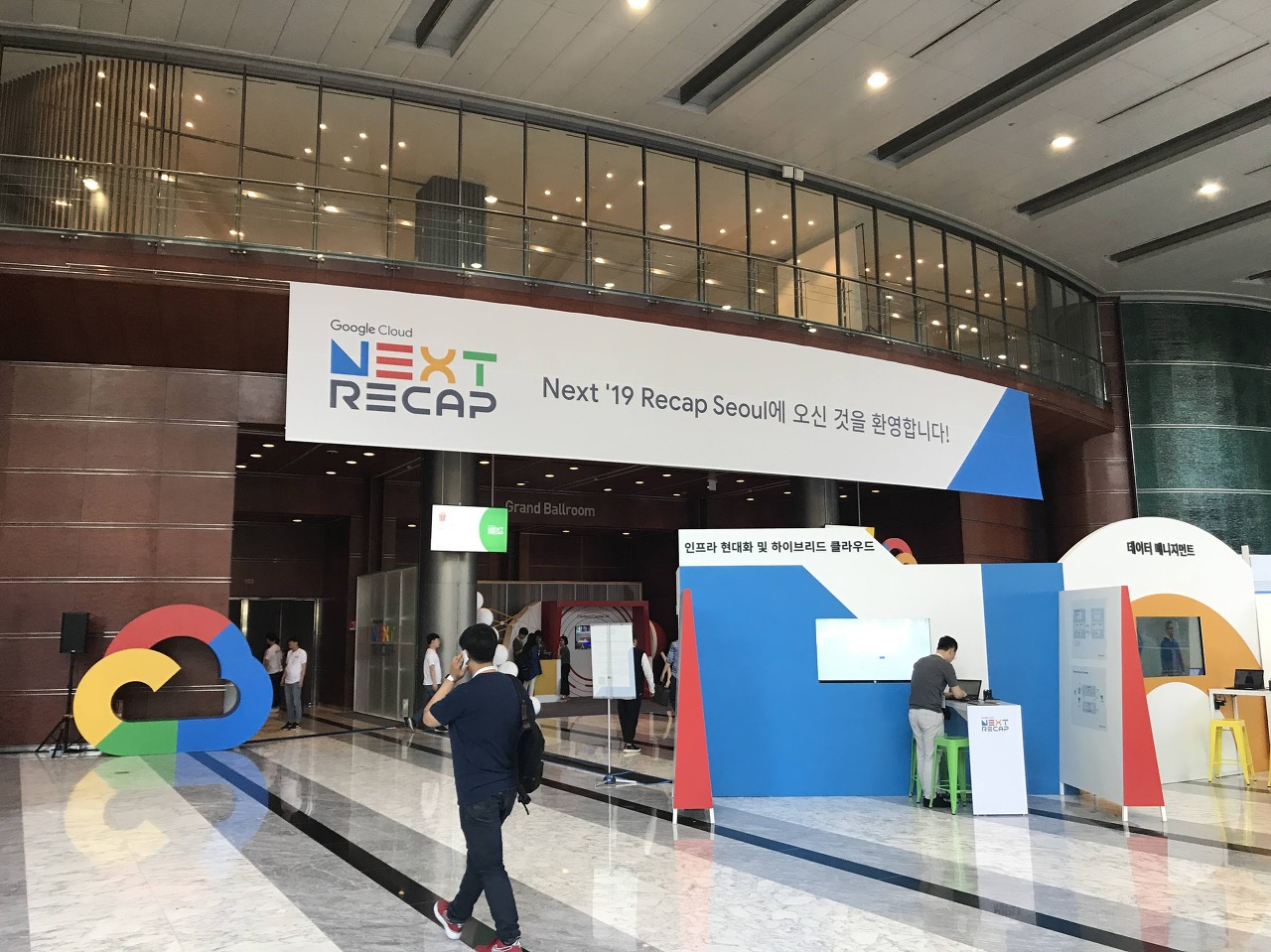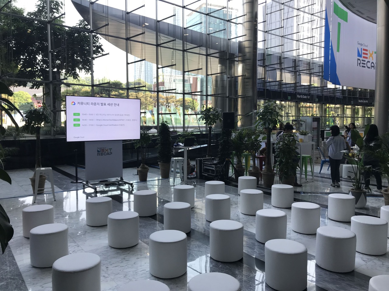 코엑스 그랜드볼룸에서 진행된 Next'19 Recap 행사에 다녀왔다. 매년 샌프란시스코에서 연례행사로 진행되는 Cloud Next의 한국버전이라고 생각하면 쉬운데 구글 코리아에서 진행한 행사이다. 내 경우에는 일반적인 컨퍼런스 참여나 오거나이징 하는 것과는 다르게 이번 행사는 커뮤니티라운지를 운영하는 위치로 참여했다. 라운지 안에 모든것은 이미 클라우드팀에서 세팅해줘서 맘편히 놀기만 하면 됐던, 그런 행사가 되시겠다. 함께 운영하신 분들의 이름은 GDG :-)