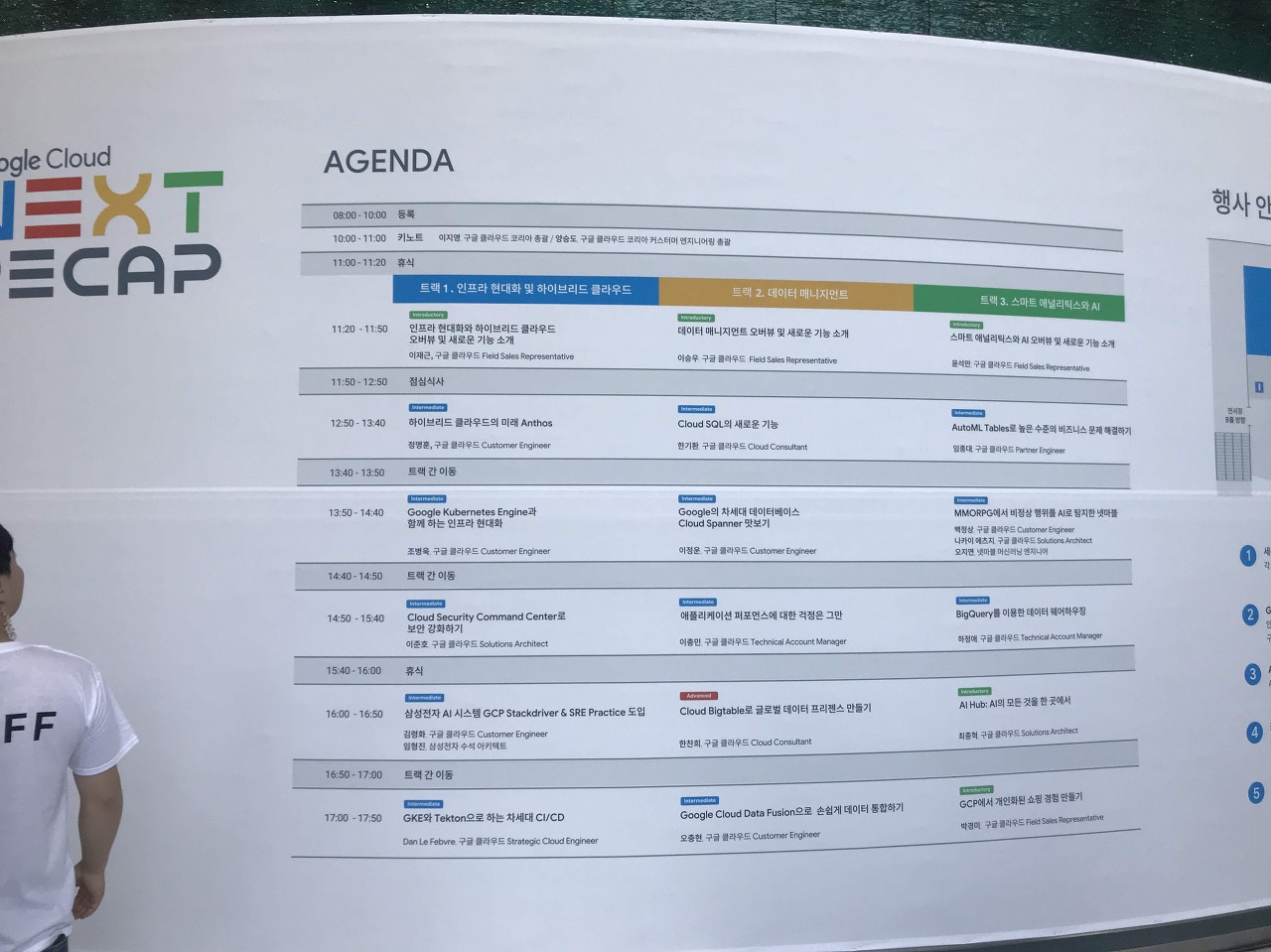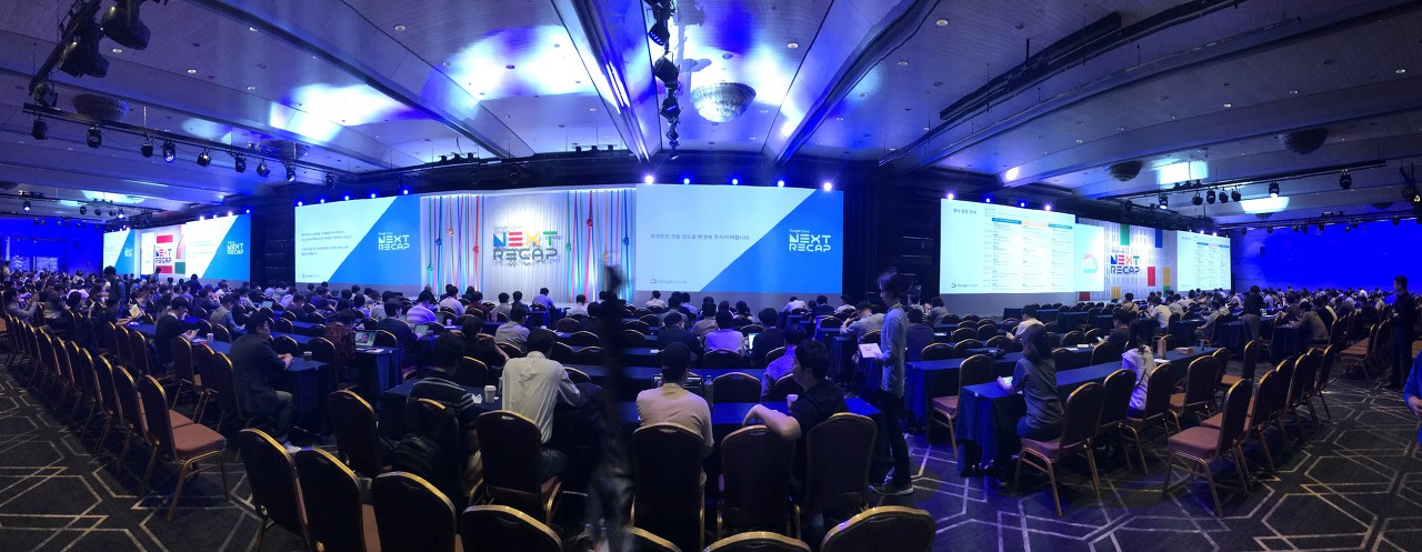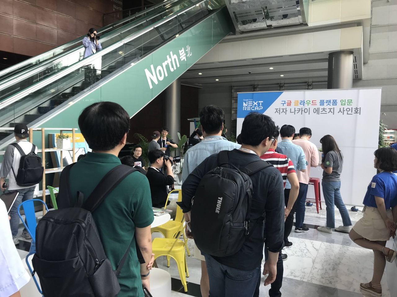 코엑스 그랜드볼룸에서 진행된 Next'19 Recap 행사에 다녀왔다. 매년 샌프란시스코에서 연례행사로 진행되는 Cloud Next의 한국버전이라고 생각하면 쉬운데 구글 코리아에서 진행한 행사이다. 내 경우에는 일반적인 컨퍼런스 참여나 오거나이징 하는 것과는 다르게 이번 행사는 커뮤니티라운지를 운영하는 위치로 참여했다. 라운지 안에 모든것은 이미 클라우드팀에서 세팅해줘서 맘편히 놀기만 하면 됐던, 그런 행사가 되시겠다. 함께 운영하신 분들의 이름은 GDG :-)