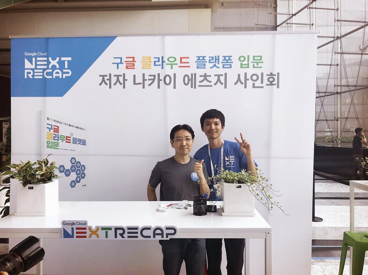 개인적으로는 구글 클라우드 플랫폼 입문 책은 GCP 입문서적으로는 번역서중 최고로 평가하는데 실물을 뵈서 너무 영광스러웠다. 되지 않는 영어, 일본어로 "당신 책을 잘 읽었고 블로그에 리뷰도 했다"라고 이야기하려고 했지만, 다행히(!) 옆에 구글 직원분께서 대신 이야기를 전해주셨다. 아무튼 기념으로 사진도 남길 수 있었다.