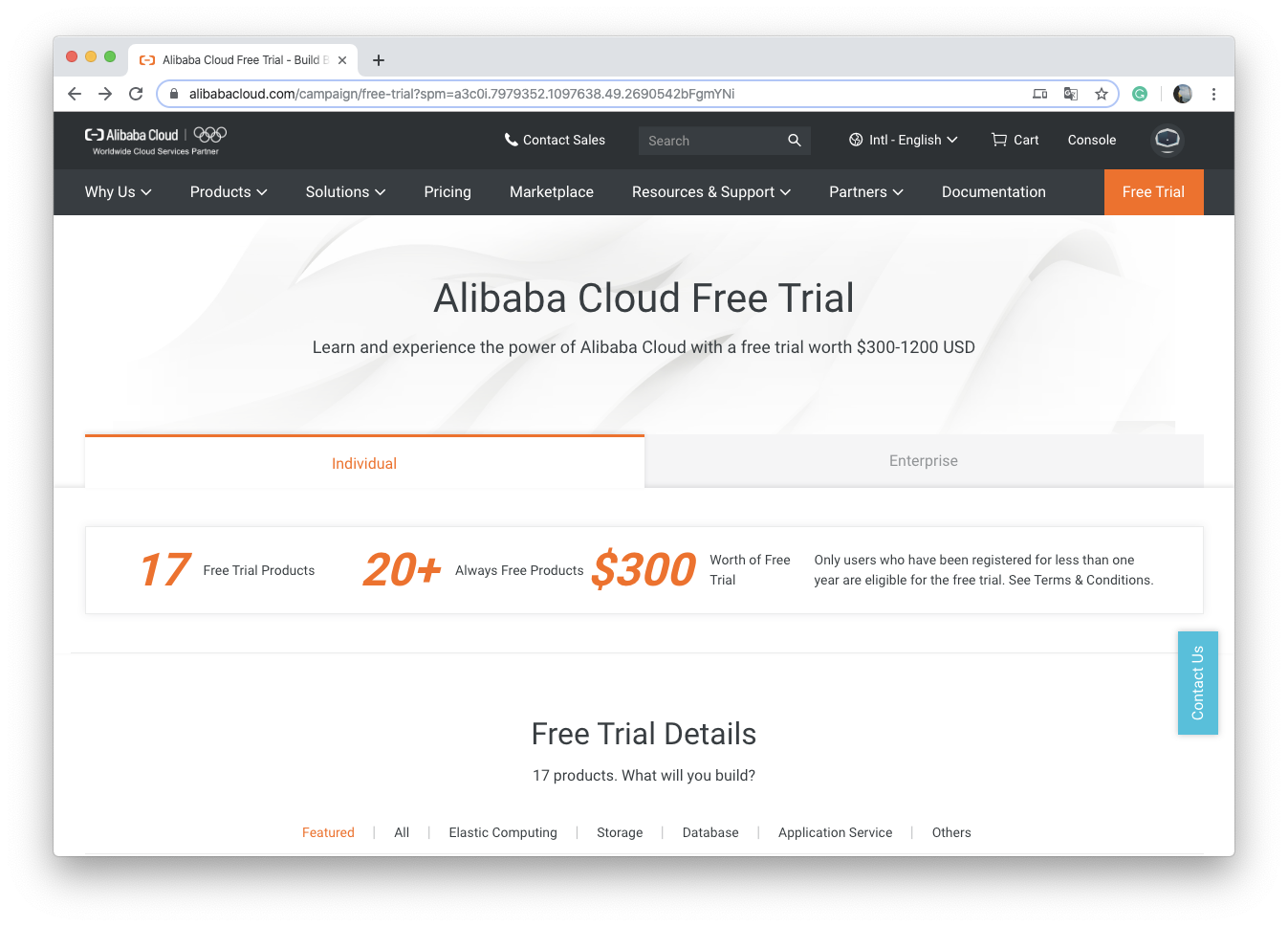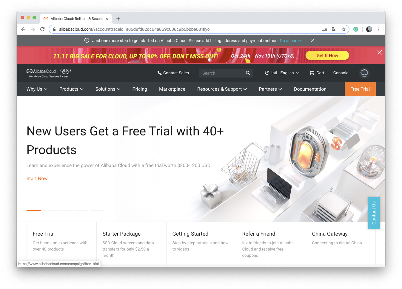 축하드립니다. 이제 알리바바 클라우드를 $300 크레딧 내에서 사용할 수 있게 되었습니다. 여기 등록된 크레딧은 GCP와는 다르게 모든 제품을 사용할 수 있는 건 아니고 $50은 Elastic Compute Server( ECS ) 인스턴스와 Server Load Balancer, Elastic IPs에서 사용됩니다. 그리고 나머지 $250은 그 외 데이터베이스, 네트워크, 스토리지 등에서 사용할 수 있습니다.