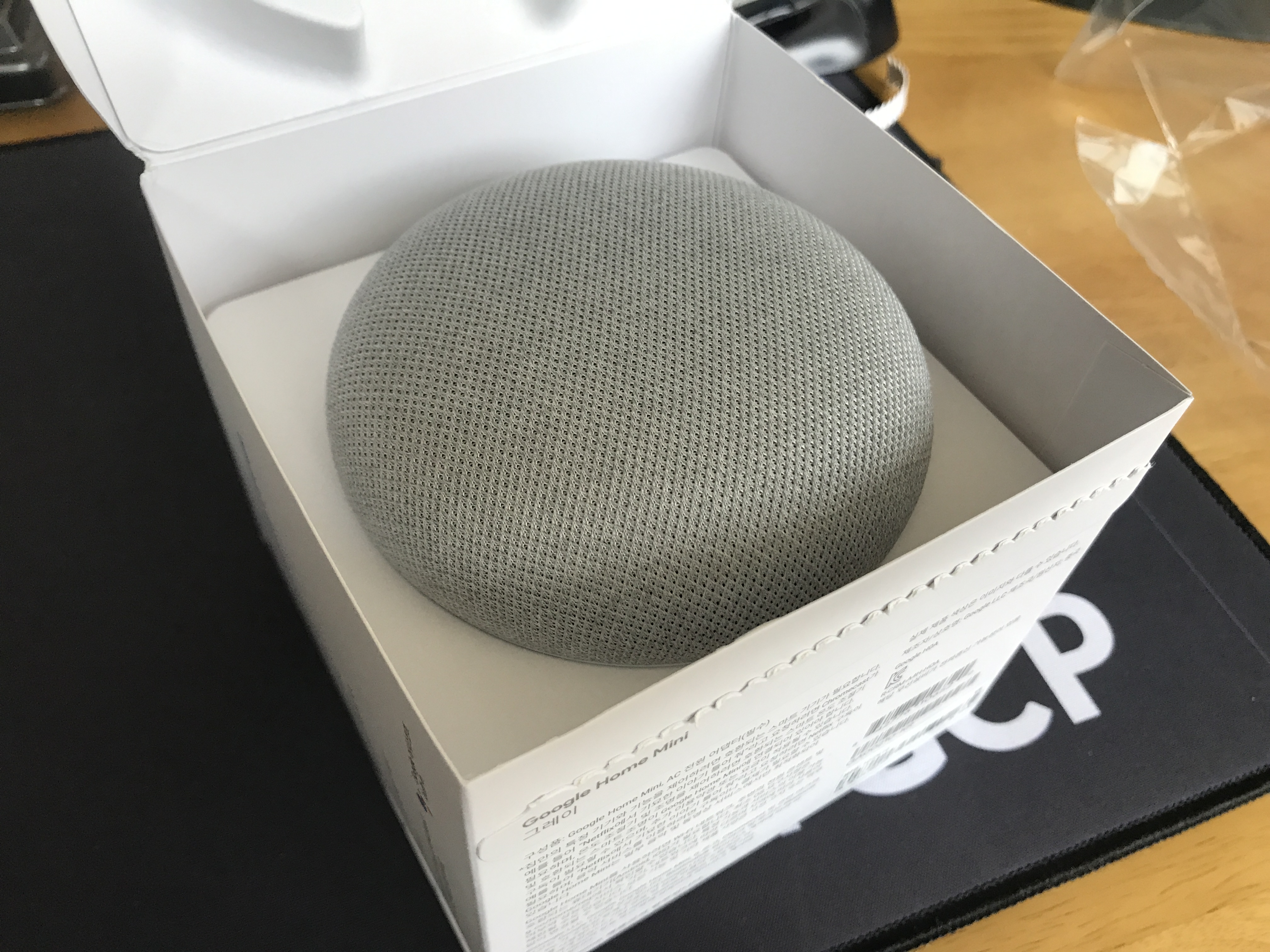 포장을 뜯어보면 계란프라이 크기 정도의 구글 홈 미니가 덩그러니 보인다.