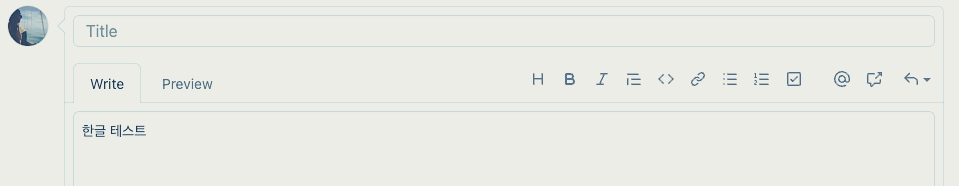 증상을 만들어보자. 우선 "한글 데데데스트"를 타이핑을 했다.