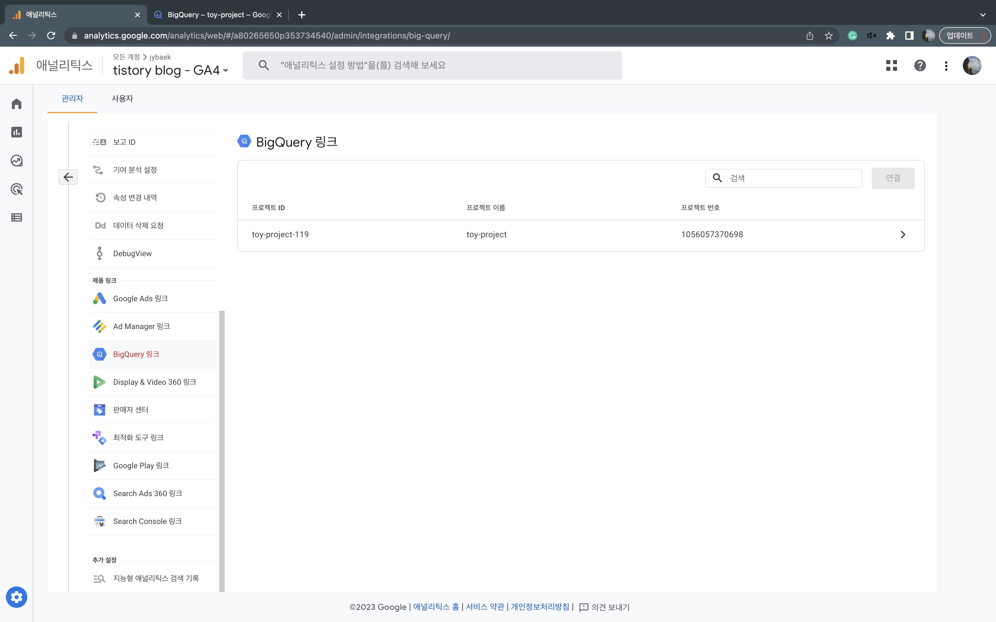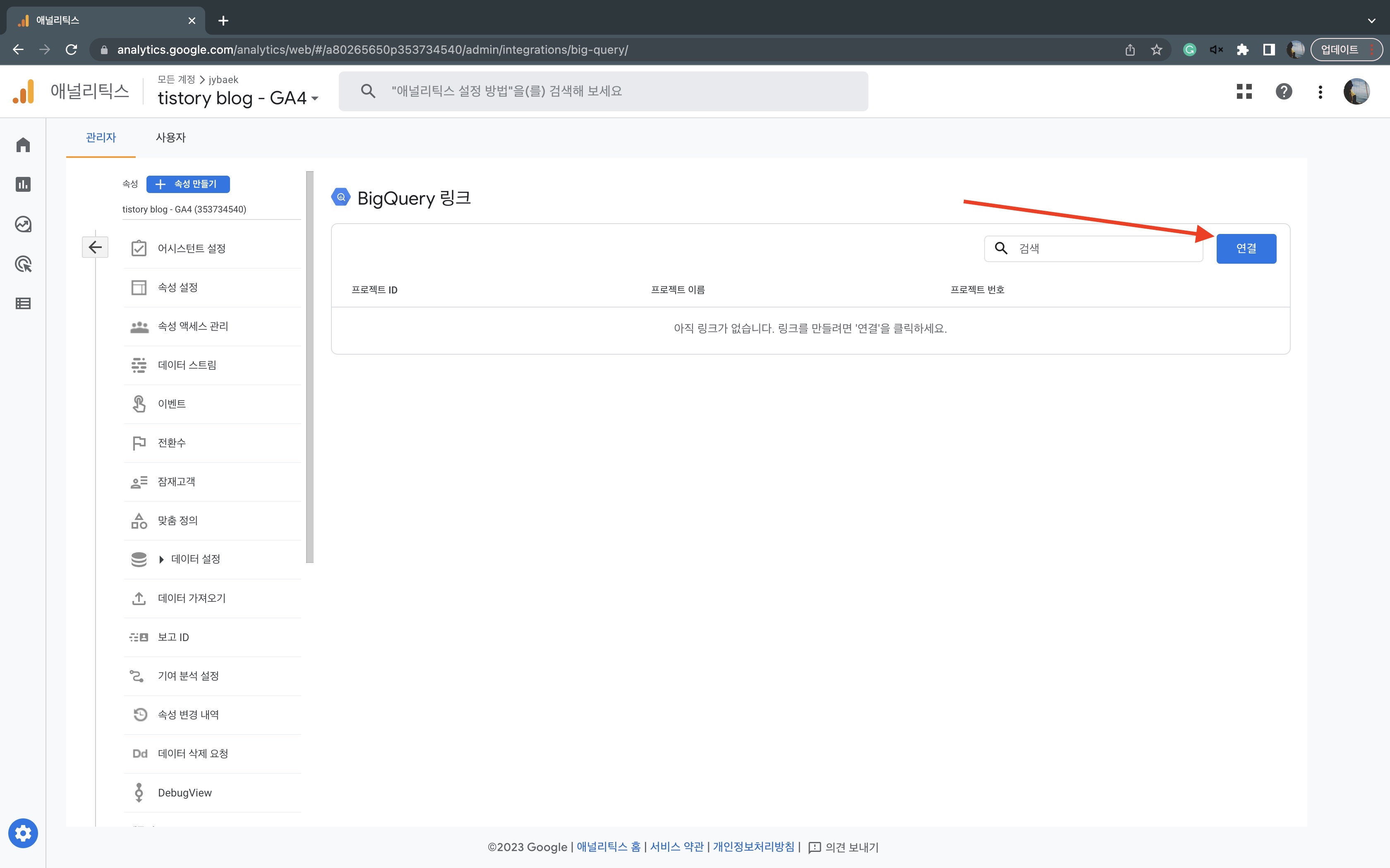 이제 아래와 같이 BigQuery 링크를 확인하실 수 있습니다.