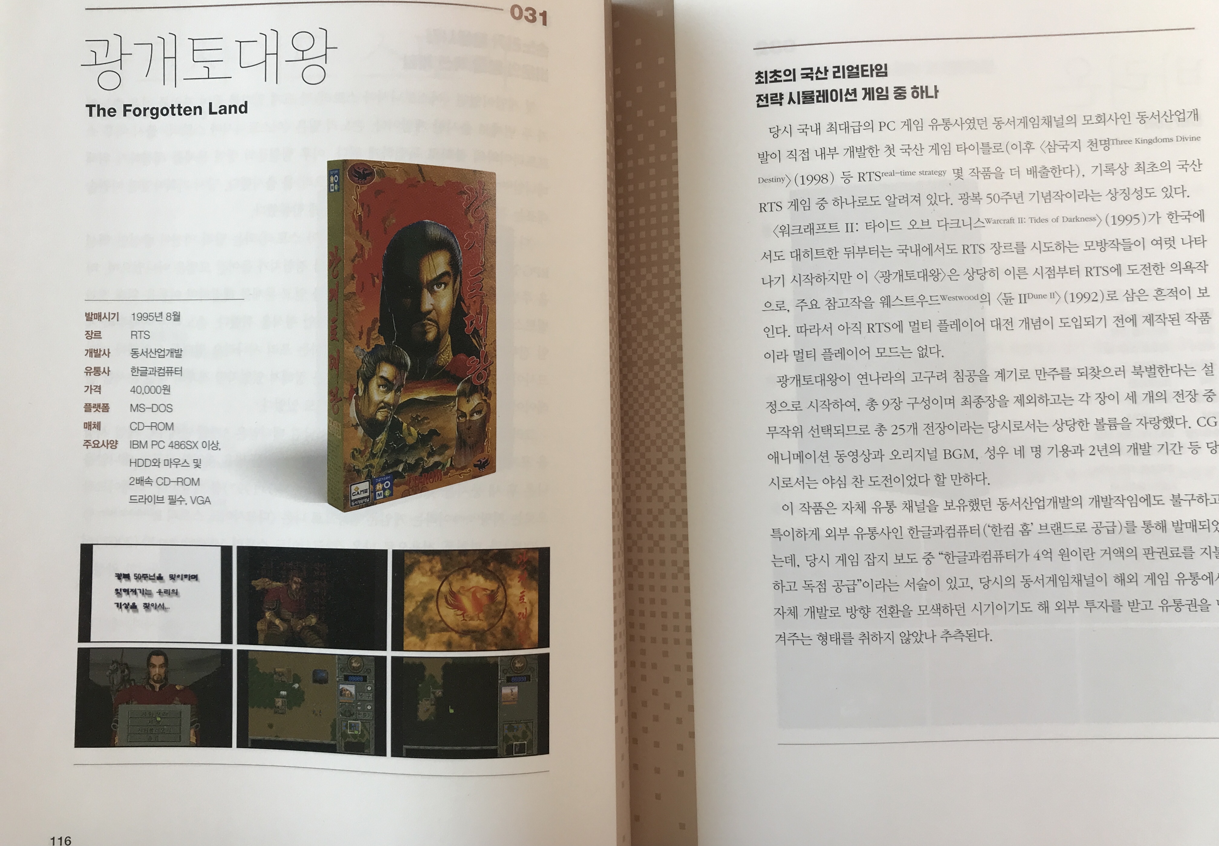 한편, 게임 개발사와 유통사를 알아보는 것도 이 책을 읽는 큰 재미입니다. 동서산업개발 광개토대왕의 유통사가 한글과 컴퓨터였다니. 지금은 잘 상상이 안되는데 삼성전자가 유통사로 참여한 게임도 있습니다. 책에서 확인해 보시길. 추억 한편에만 존재하는 게임도 있습니다. 포가튼 사가는 제목만 기억에 남아있는 게임. 스크린샷을 봐도 당최 전혀 기억이 나질 않습니다. 분명히 오랜 시간 재밌게 했던 것 같은데..