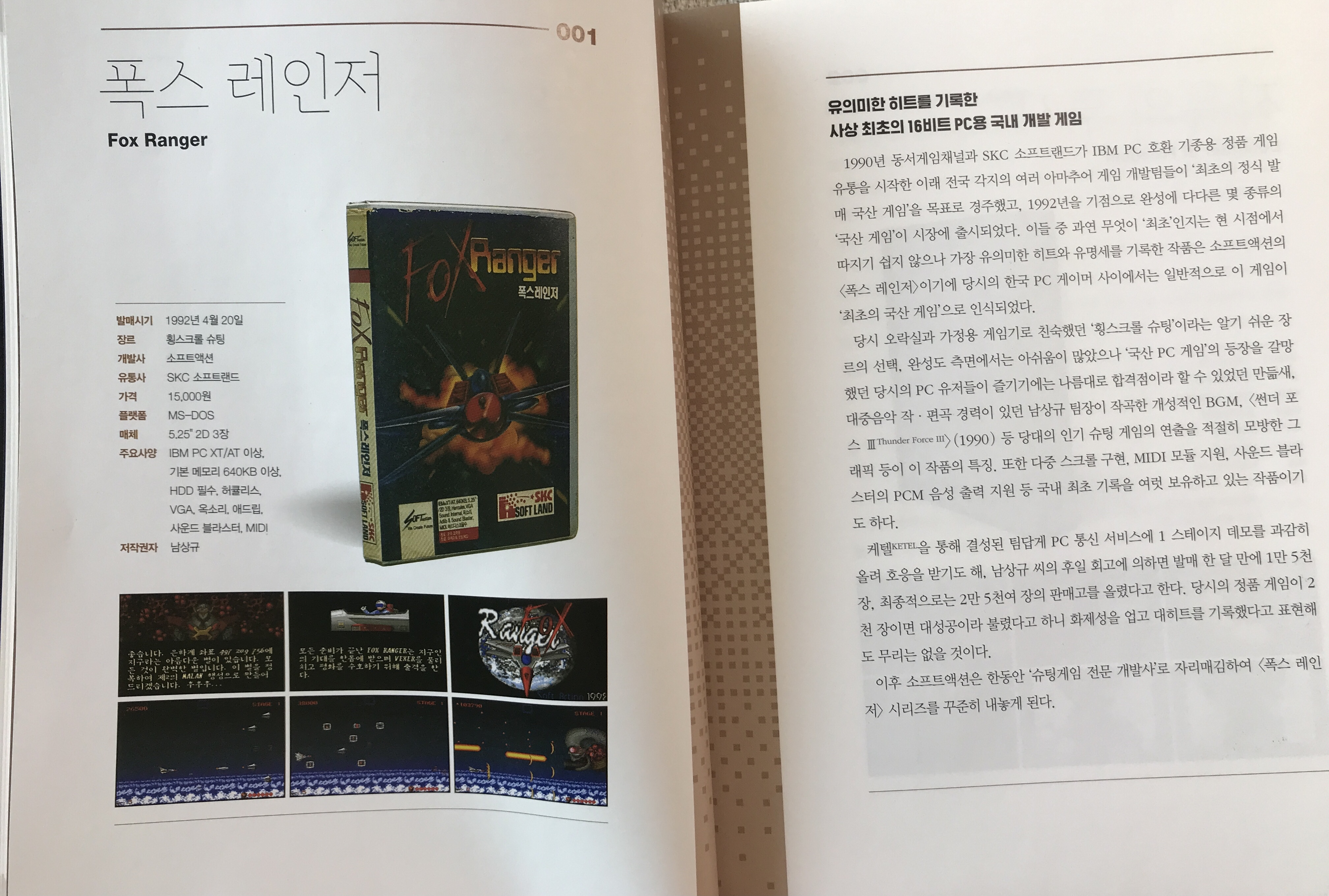 책은 도입부부터 가슴을 웅장하게 해 줍니다. 유년기 시절 나를 컴퓨터 앞에서 떠나지 못하게 했던 다양한 게임이 쉴 틈 없이 소개됩니다. 한 번 자리에 앉으면 떠나지 못하게 했던 횡스크롤 슈팅 게임, 그 당시에는 제목도 제대로 몰랐던 게임을 이 책을 통해서 만나게 됐습니다. 바로 폭스 레인저가 그 주인공입니다.